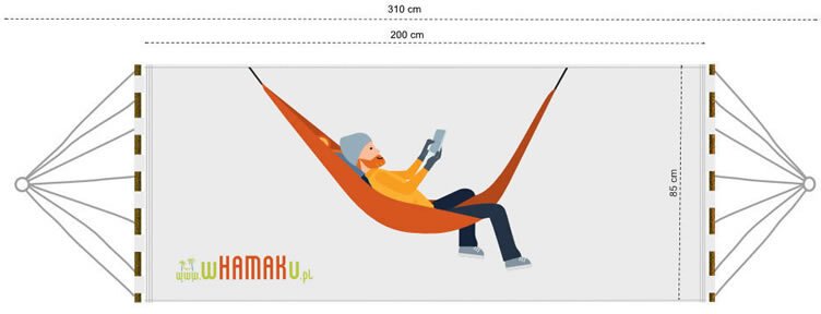 Hamak WHR-2 ma wymiary materiału wynoszące 85 cm x 200 cm, co zapewnia komfortową przestrzeń do wypoczynku. Starannie obszyty materiał gwarantuje jego trwałość oraz estetyczny wygląd, a przemyślane szlufki ułatwiają montaż.