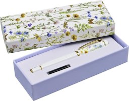 Konstrukcja pióra wykonana jest z mocnego mosiądzu, a jego lakierowane wykończenie nadaje mu elegancki wygląd. Pióro dostarczane jest w stylowym pudełku, które również zdobione jest tym samym wzorem, co sprawia, że stanowi idealny prezent dla bliskiej osoby.