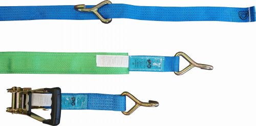 Tekson Pas Zabezpieczający 3,5m/50mm/4t Lohr 3-Punktowy Niebieski, 350 Dan, "Gumowa Rączka", Z Hakiem "J", Zielona Tuba