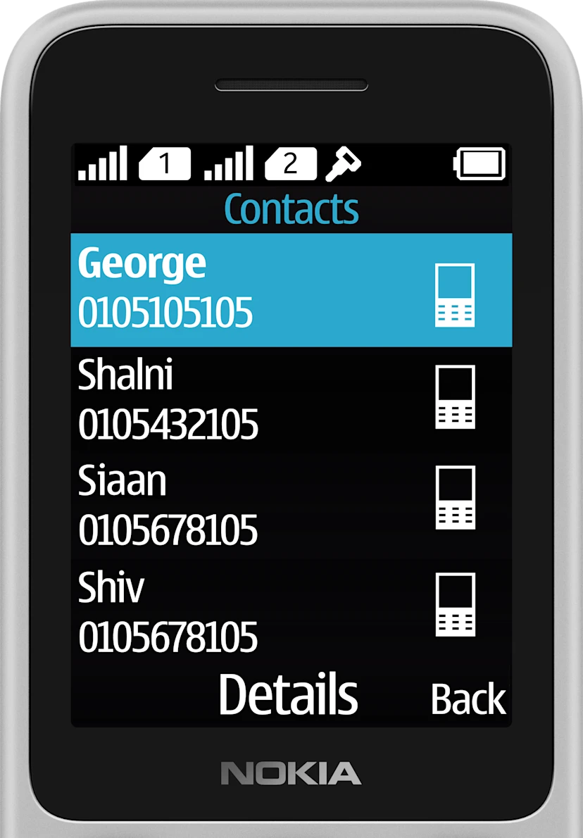 Miejsca wystarczy dla wszystkich. Nokia 125 umożliwia przechowywanie do 2000 kontaktów i do 500 wiadomości SMS.