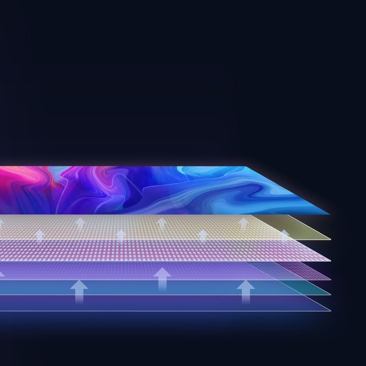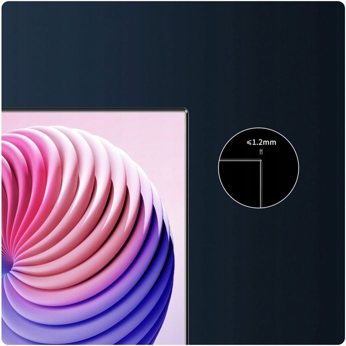 Dzięki wprowadzeniu nowej generacji procesu klejenia optycznego, ramy telewizora mogą być cieńsze i węższe. Tworzy to większy obszar wyświetlania o tej samej wielkości w calach.