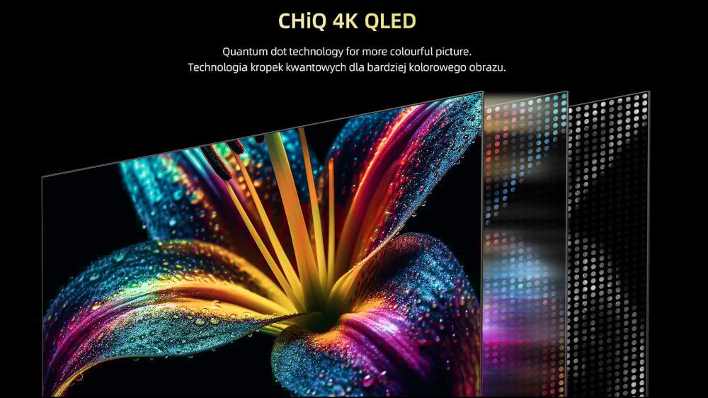 Dzięki wykorzystaniu kropek kwantowych, telewizor zapewnia o wiele szerszą gamę kolorów w porównaniu do tradycyjnych technologii wyświetlania.