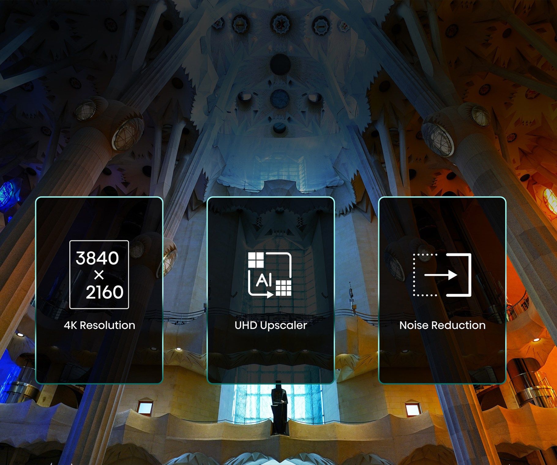UHD AI Upscaler wzmacnia sygnały inne niż 4K, aby osiągnąć rozdzielczość zbliżoną do 4K, która zapewnia potężne szczegóły, pozwalając cieszyć się jakością obrazu 4K nawet przy standardowym sygnale FHD. Zamiast po prostu powtarzać każdy piksel cztery razy, skaler Hisense UHD AI Upscaler oblicza kolory sąsiednich pikseli i automatycznie kompensuje je, stosując odpowiednie kolorowe piksele, scena po scenie.