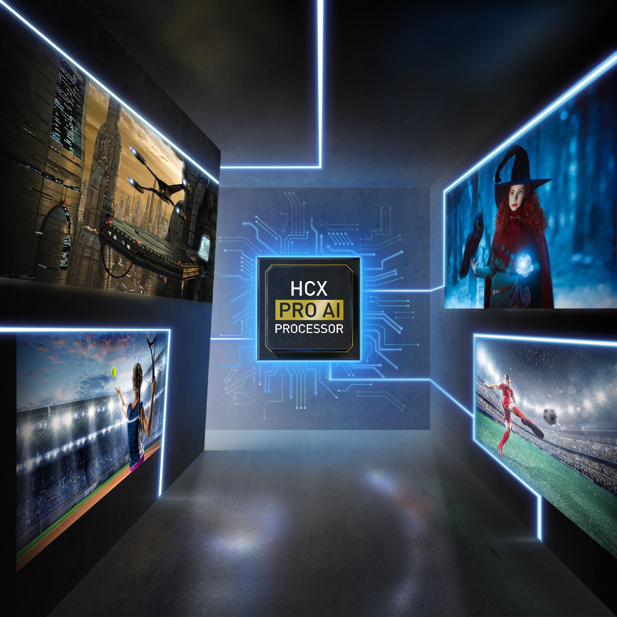 Auto AI - telewizory klasy premium inteligentnie analizują dostarczany sygnał, nieustannie dostosowując parametry obrazu. Funkcja Auto AI dostosowuje scenę do programów sportowych, filmów i innych treści, wykorzystując wbudowane ustawienia. Wystarczy usiąść wygodnie i delektować się jakością obrazu.