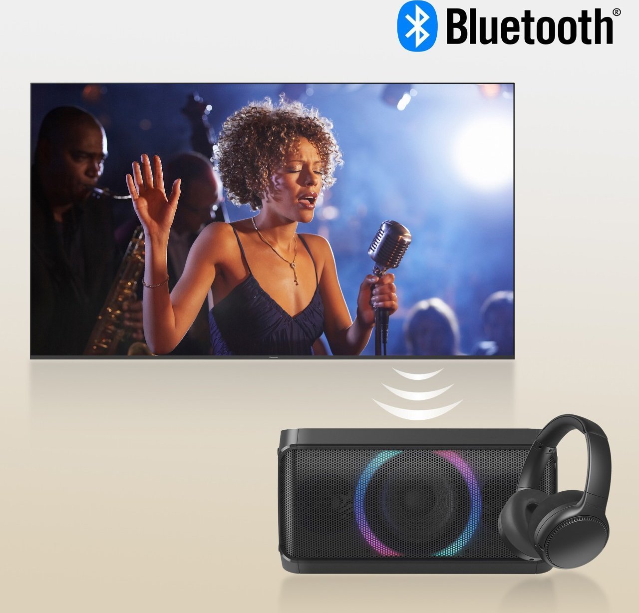Dzięki Bluetooth telewizory z serii MXW834 łatwo połączysz z bezprzewodowym głośnikiem lub słuchawkami, aby cieszyć się jeszcze lepszą jakością dźwięku. Bluetooth umożliwia także odtwarzanie muzyki ze smartfona i innych urządzeń przez głośniki telewizora.