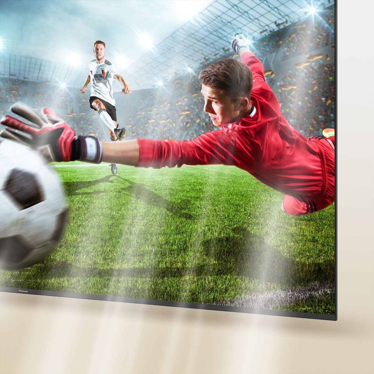 Dolby Atmos – świetny obraz wywołuje emocje dopiero przy odpowiedniej oprawie dźwiękowej. Nasz procesor dźwięku z technologią Dolby Atmos oferuje pełne wrażenie dźwięku przestrzennego, który sprawia, że poczujesz się, jakbyś siedział na najlepszym miejscu na stadionie.