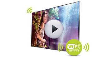 Wbudowana karta Wi-Fi telewizora Philips Smart TV sprawia, że łączenie z siecią domową jest szybkie i łatwe, co pozwala na dostęp do świata rozrywki lub bezprzewodowe udostępnianie multimediów w domu.