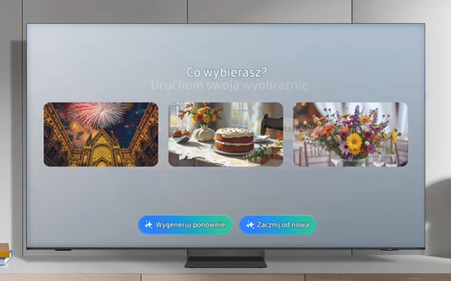Wystarczy, że wybierzesz słowa kluczowe oddające atmosferę, którą chcesz uzyskać, a Tapeta AI zajmie się resztą. Sztuczna inteligencja pomoże Ci stworzyć wspaniałe, jedyne w swoim rodzaju obrazy, które wypełnią ekran telewizora i nadadzą wyjątkowy charakter wnętrzu.