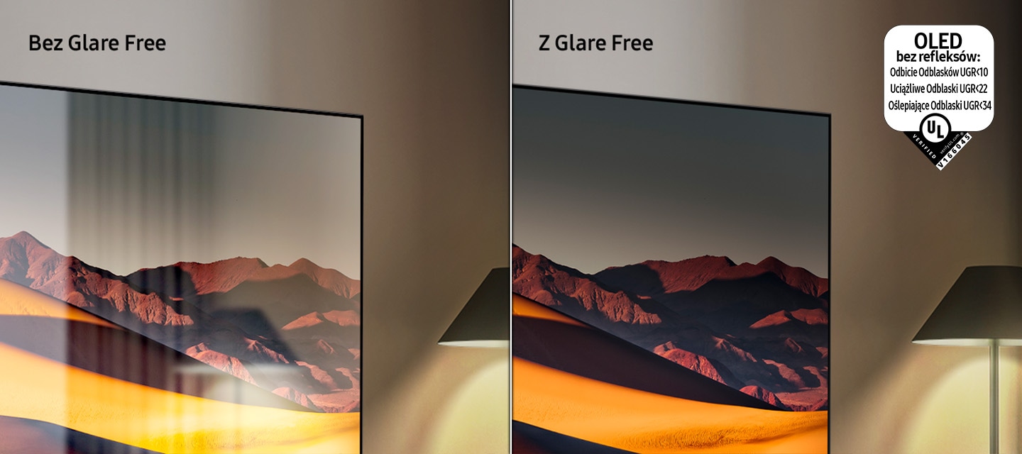 Zobacz olśniewające kolory dzięki technologii Glare Free. To nasza najnowocześniejsza technologia antyodblaskowa, zaprojektowana, by zredukować odblaski i połysk ekranu. Zapewnia wyraźniejszy, wygodniejszy i bardziej wyrazisty obraz, zarówno w świetle dziennym, jak i w pomieszczeniach.
