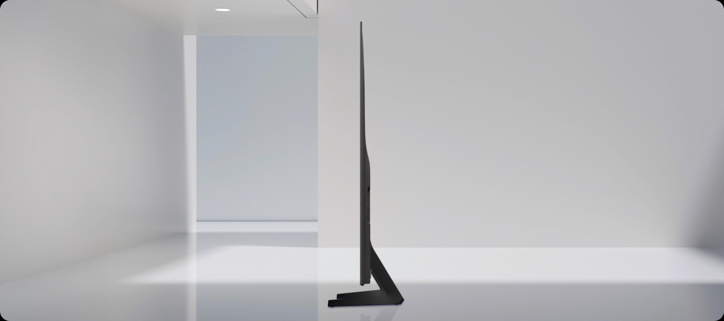 Opływowy kształt telewizora osiągnęliśmy dzięki konstrukcji o eleganckiej i płynnej formie. Główną zasadą przy jej projektowaniu było skojarzenie z falą, gładkością i płynnością, aby Twój telewizor płynnie dopasował się do wystroju otoczenia i dawał efekt zanurzenia w obrazie.