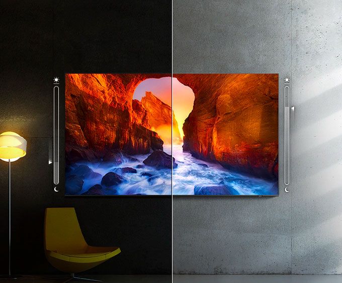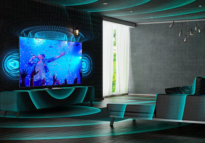 Ciesz się zoptymalizowanym dźwiękiem, który dostosowuje się do Twojego otoczenia. Bez względu na to, gdzie umieścisz swój telewizor, zawsze możesz doświadczać doskonałego brzmienia. Na podstawie analizy swojego otoczenia, telewizor wygeneruje dźwięk perfekcyjnie dopasowany do Twojej przestrzeni.