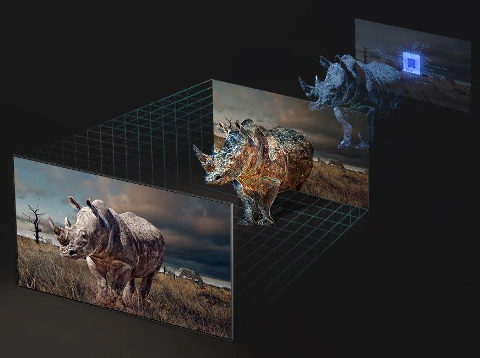 Doświadczaj jeszcze więcej dzięki multi-inteligentnemu procesorowi Samsung. Udoskonalony proces skalowania o jakości zbliżonej do 8K, oparty jest aż na 20 wielomodelowych sieciach neuronowych, które analizują dane obrazu. Każda z sieci odpowiada za określony obszar i jest automatycznie dobierana przez algorytm, aby podnieść jakość dostarczanej treści. Ten inteligentny algorytm, poprzez proces szczegółowego uczenia się, analizuje obrazy, treści wejściowe i podnosi jakość każdej sceny, jej kontrast i kolory, aby doświadczyć w pełni mocy obrazu zbliżonego do 8K.