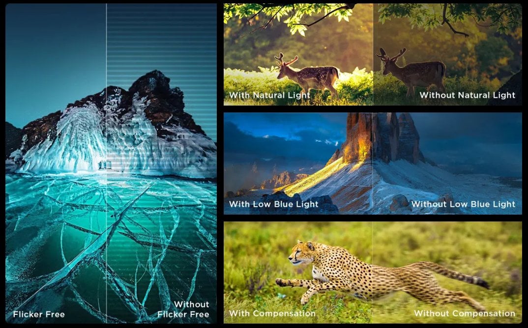 Inteligentnie identyfikuje charakterystykę kolorów obrazu i przeprowadza dynamiczną kalibrację kolorów oraz ochronę odcieni skóry, zapewniając bardziej żywe kolory, pozwalając użytkownikom uzyskać wciągające wrażenia podczas grania w gry lub oglądania filmów.