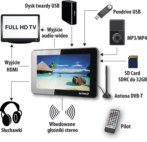 Telewizor Wiwa Telewizory LCD >> Telewizor 10" LCD DVB-T WIWA HD-110 & FullHD Player (HD-110) - RTVWIWTLC0002