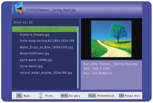 | PRV Nagrywanie z DVB-T | Odtwarzanie MP3 | Przeglądanie zdjęć |