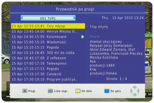 - funkcja EPG - elektroniczny przewodnik po kanałach
