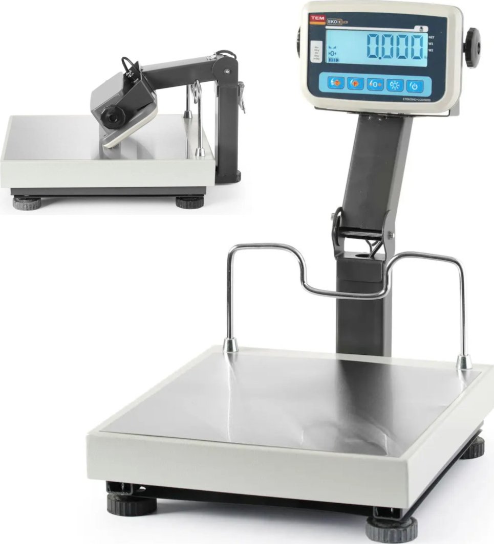 Waga platformowa LCD ze składanym wysięgnikiem i z legalizacją, seria EKO*+, 60 kg marki TEM to precyzyjne, wszechstronne urządzenie polecane do użytku w handlu czy przemyśle, ale także w sklepach spożywczych czy delikatesach. Waga posiada legalizację pierwotną i jest gotowa do użycia od razu po rozpakowaniu. Wydajna bateria 6 V, 4,5 Ah pozwala na pracę do 100 godzin. Urządzenie ma duży 6-cyfrowy wyświetlacz LCD oraz panel z przyciskami funkcji: ustawienia, zero, tara oraz podświetlanie ekranu. Wysięgnik wykonany z malowanego żeliwa posiada specjalny system blokowania.