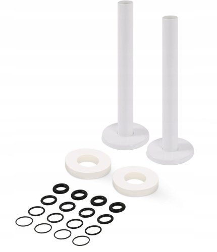 Zestaw maskujący został zaprojektowany do zakrywania połączeń zaworów o większej odległości niż 55 mm na osi środkowej, co czyni go idealnym wyborem dla grzejników dekoracyjnych. Dzięki temu możesz cieszyć się nie tylko funkcjonalnością, ale także estetyką swojego wnętrza.
