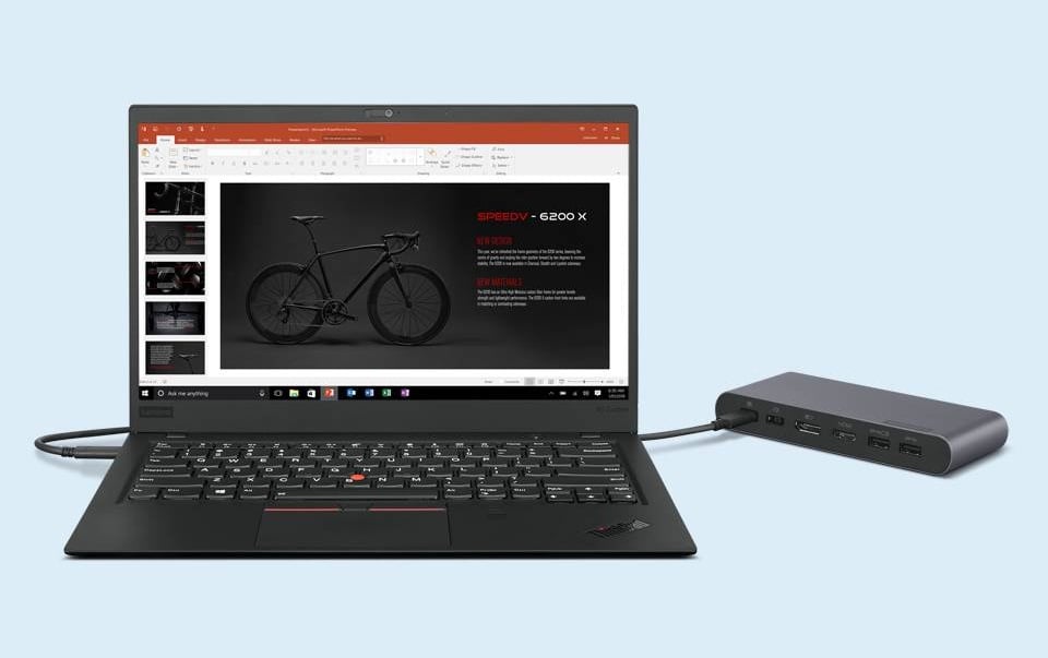 Zapomnij o plątaninie przewodów i bałaganie na biurku. Lenovo USB-C Universal Business Dock wymaga podłączenia tylko jednego kabla USB-C, aby zapewnić błyskawiczny transfer danych, obsługę dwóch monitorów 4K oraz ładowanie laptopa.