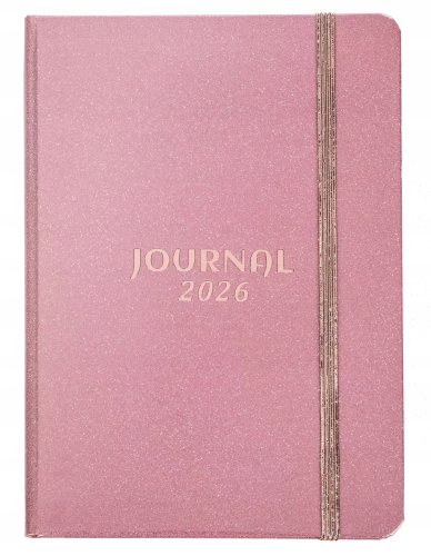 Elegancka okładka terminarza wykonana jest z brokatowego laminatu w twardej oprawie, co nadaje mu unikalnego charakteru. Dodatkowo, wykończenie lakierem UV sprawia, że kalendarz jest nie tylko estetyczny, ale także odporny na uszkodzenia. Tasiemka oraz gumka do zamykania w kolorze oprawy dodają mu funkcjonalności i stylu.
