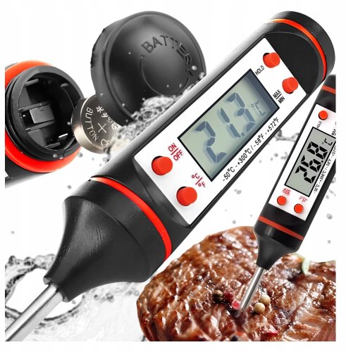 Termometr jest wyposażony w czytelny wyświetlacz LCD, który ułatwia odczyt temperatury. Dzięki temu, nawet w trakcie intensywnego gotowania, możesz szybko i bez problemu sprawdzić, czy Twoje danie osiągnęło odpowiednią temperaturę.