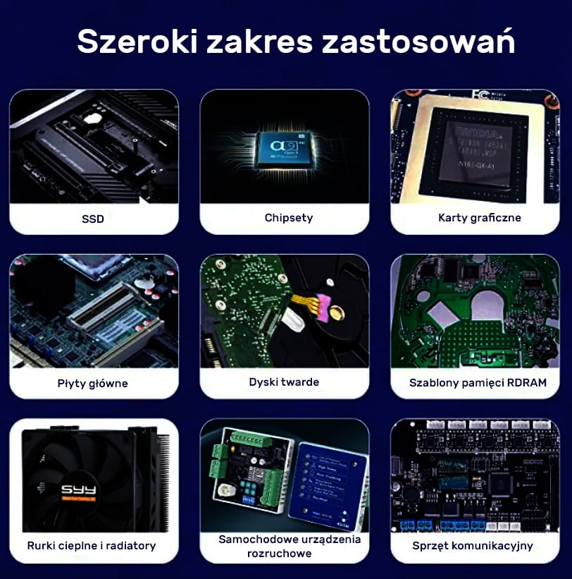 Termopady stosuje się w urządzeniach gdzie intensywna praca procesora czy innego układu scalonego może prowadzić do ich przegrzania i uszkodzenia. Dzięki termopadom, możemy skutecznie obniżyć temperaturę komponentów, co zwiększa ich żywotność oraz poprawia stabilność całego urządzenia.