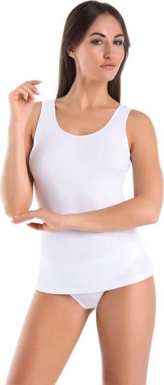 Kolor: Biały, Rozmiar: 2XL, - Bawełniany top damski z szerszymi ramiączkami- Podkoszulek z dekoltem klasycznym- Koszulka wykonana z bawełny z dodatkiem lycry- Doskonały pod ubrania, ćwiczenia lub do chodzenia