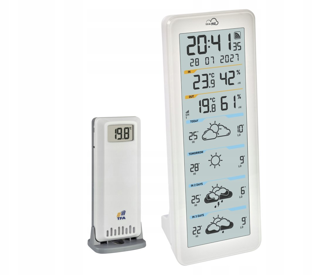 Stacja pogodowa TFA.me ID-06 35.8108.02 to nowoczesne urządzenie, które oferuje profesjonalne prognozy pogody na cztery dni. Dzięki danym z serwisu online wetter.com, użytkownicy mogą uzyskać szczegółowe informacje o aktualnych warunkach atmosferycznych, co czyni ją idealnym narzędziem dla każdego, kto chce być na bieżąco z pogodą.