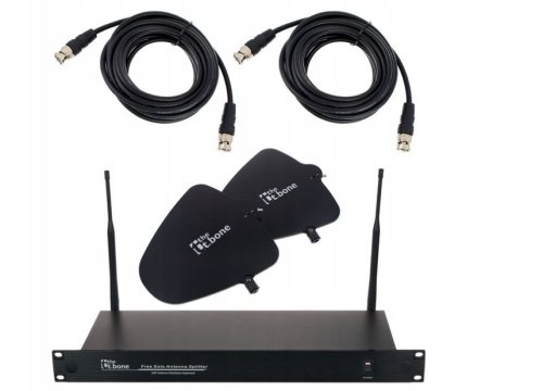 W skład zestawu wchodzi 4-kanałowy rozgałęźnik antenowy UHF Wideband, który obejmuje szerokie pasma UHF: 470-608 MHz, 614-694 MHz, 823-832 MHz oraz 863-865 MHz. Dzięki dwóm wejściom BNC z zasilaniem 9V DC, zestaw jest kompatybilny z antenami aktywnymi, co zapewnia jeszcze lepszą jakość sygnału.