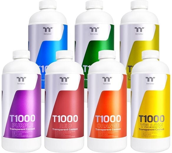 Seria przezroczystych płynów chłodzących Thermaltake T1000 została zaprojektowana zgodnie z najnowszą formułą TT, która ma być stosowana jako płyn antykorozyjny i czynnik przenoszący ciepło w chłodzeniu wodą komputera. Dzięki przezroczystym kolorom T1000 pozwala użytkownikom tworzyć unikalne kolory, dodając koncentrat TT Premium. Nowa formuła zapewnia chłodziwom serii T1000 stabilność koloru i niską lepkość, co umożliwia efektywny przepływ. Thermaltake T1000 Coolant Series zachęca użytkowników do tworzenia własnych kolorów dla twojego systemu!