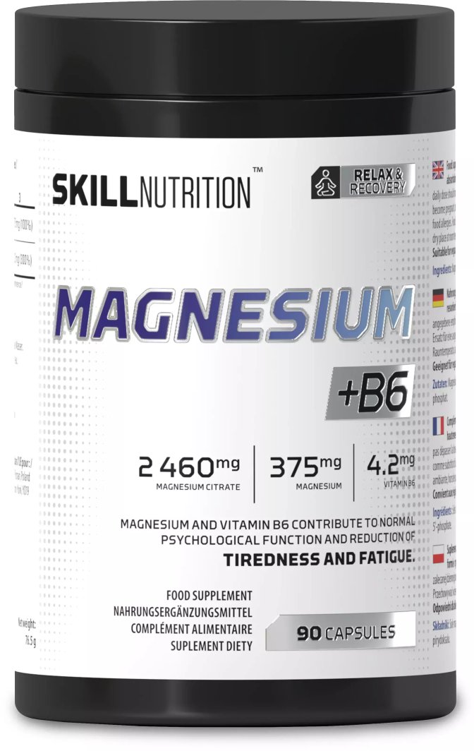 Skill - Cytrynian Magnezu to znakomity suplement diety w formie kapsułek, stworzony z myślą o sportowcach oraz osobach prowadzących aktywny tryb życia. Zawiera magnez w postaci cytrynianu oraz witaminę B6, które wspierają codzienną dietę, przyczyniając się do prawidłowego funkcjonowania organizmu. Dzięki temu produktowi możesz zadbać o swoje zdrowie i wydolność, co jest kluczowe podczas intensywnych treningów.