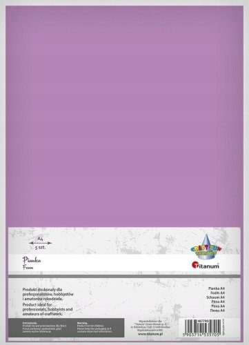 Pianka A4 w odcieniu jasnofioletowym od marki Titanum to znakomity wybór dla pasjonatów rękodzieła. Zestaw składający się z pięciu sztuk umożliwia realizację różnorodnych projektów artystycznych, od scrapbookingu po różne prace plastyczne. Dzięki swojej wszechstronności, pianka doskonale sprawdzi się w wielu zastosowaniach, nadając wyjątkowy charakter każdemu dziełu.