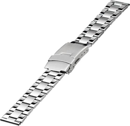 Elegancka bransoleta uniwersalna pasująca do wszystkich rodzajów zegarków o mocowaniu teleskopowym. Wykonana z stali nierdzewnej. Szerokość bransolety wynosi 20mm, natomiast szerokość mocowania do koperty 22mm. Teleskopów brak w zestawie, można wykorzystać te które są przy zegarku.Szerokość bransolety: 20 mmSzerokość mocowania do koperty: 22 mmKolor srebrnyWykonana ze stali nierdzewnej