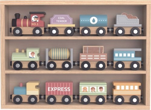 Wszyscy na pokład pociągu ekspresowego. Twoje dziecko będzie się świetnie bawić z tym 12-częściowym zestawem magnetycznych pociągów i wagonów firmy Tooky Toy. Każdy zestaw zawiera 3 pociągi i 9 wagonów, które łączą się za pomocą magnesów. Niezależnie od tego, czy przewozisz węgiel, benzynę czy ludzi, ten zestaw pociągów zachęci dzieci do zabawy. Gdy nie jest używany, zestaw można starannie zapakować i wyeksponować w drewnianym pojemniku, w którym jest zapakowany. Każdy drewniany zestaw pociągów i wagonów firmy Tooky Toy jest wykonany z drewna i wykończony z najwyższą jakością.