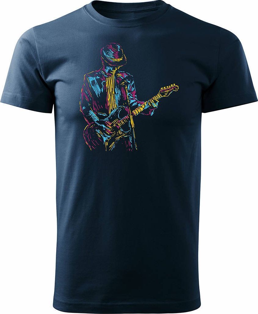 Topslang Koszulka z gitarą dla gitarzysty rockowa jazzowa smooth jazz męska granatowa REGULAR XXL