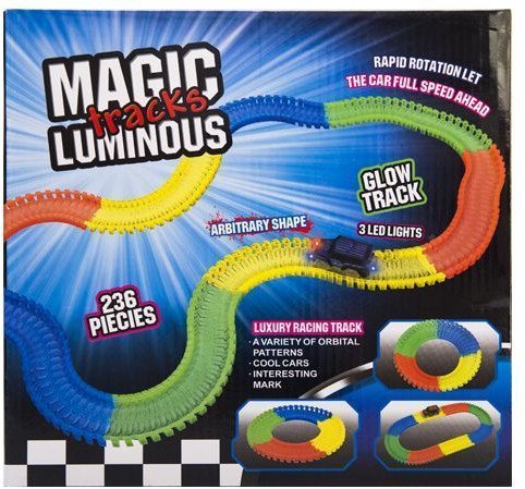 Świecący tor samochodowy to idealny pomysł na na prezent dla najmłodszych miłośników wyścigów samochodowych. Produkt jest łatwy w złożeniu i zapewni długie godziny wspaniałej zabawy. Zestaw składa się z toru liczącego 236 elementów, w tym 1 autka o długości 9 cm.