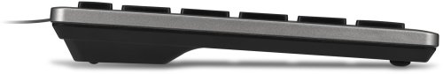 Klawiatura charakteryzuje się pełnowymiarowym układem ISO, co zapewnia wygodę podczas pisania oraz łatwy dostęp do wszystkich klawiszy, w tym klawiatury numerycznej. To doskonałe rozwiązanie dla osób pracujących z danymi i liczbami.