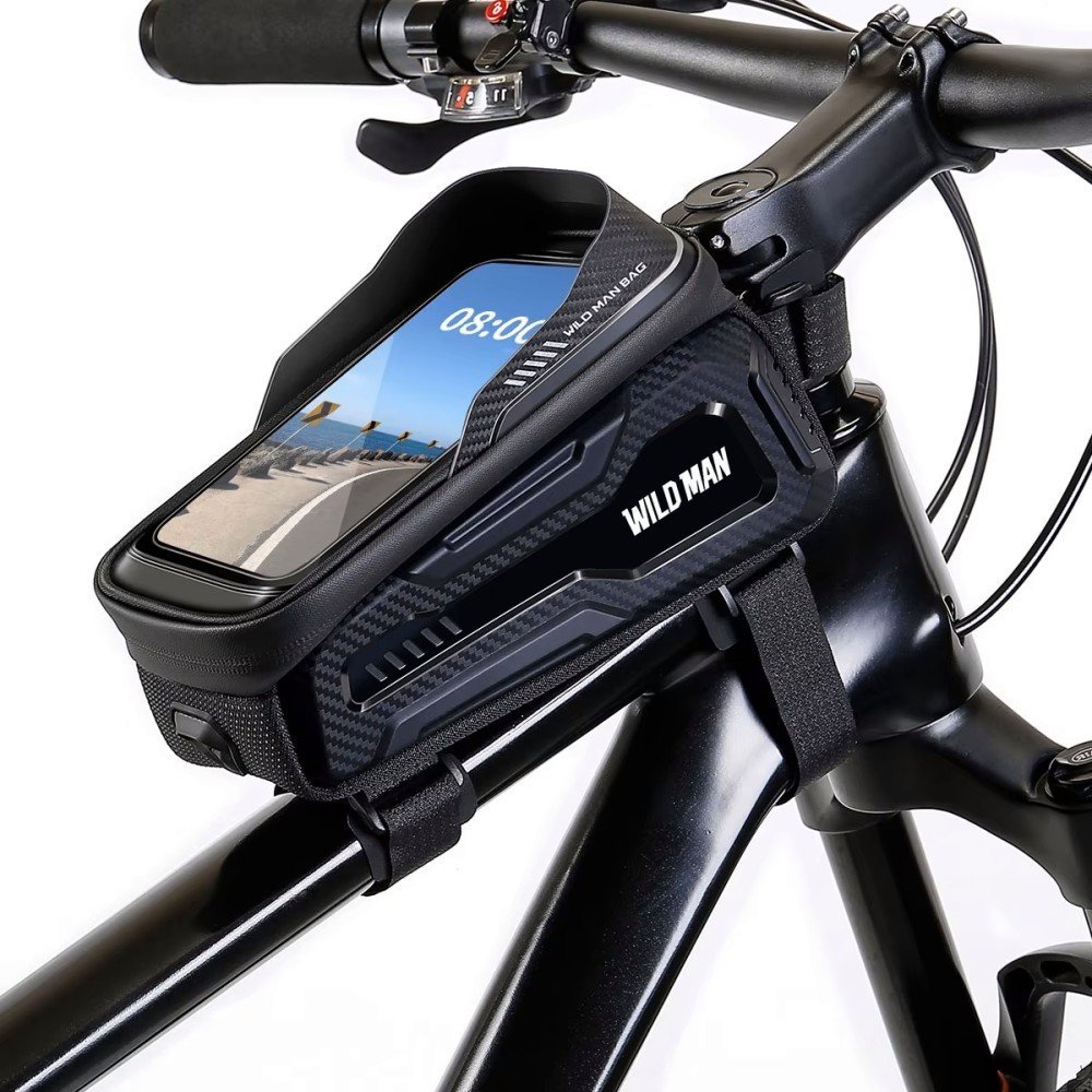Torba rowerowa wodoodporna WildMan M20, uchwyt na telefon, czarna.