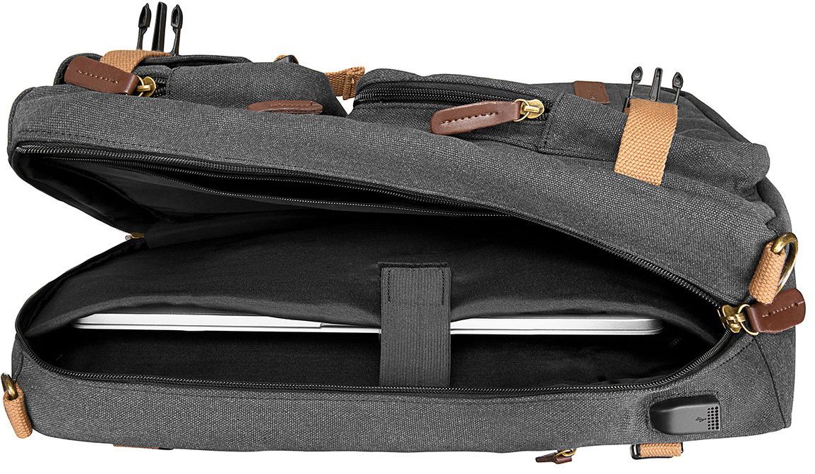 Torba posiada wygodny regulowany pasek, który umożliwia noszenie torby na ramieniu, poziom regulacji paska wynosi nawet do 135 cm. Kolejną opcją jest noszenie torby na plecach, dzięki szelkom, które można wyciągnąć ze schowka znajdującego się z tyłu torby. Montaż chowanych szelek jest bardzo szybki i prosty. Torba posiada również uchwyt u góry torby oraz z boku, dzięki czemu można ją nosić w sposób pionowy oraz poziomy.