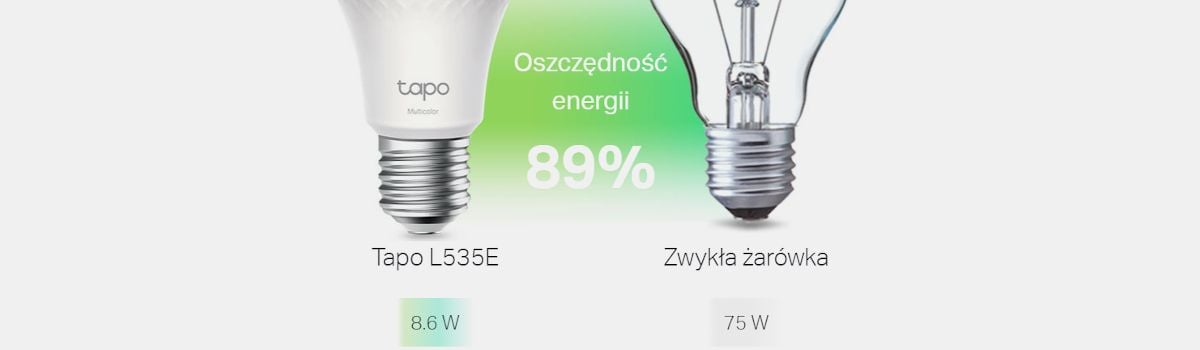 Tapo L535E zużywa nawet o 89% mniej energii w porównaniu ze żarówką o mocy 75W, zachowując tę samą jasność. Ta żarówka została zaprojektowana tak, aby mogła wydajnie pracować przez długie okresy czasu i jednocześnie być oszczędną.