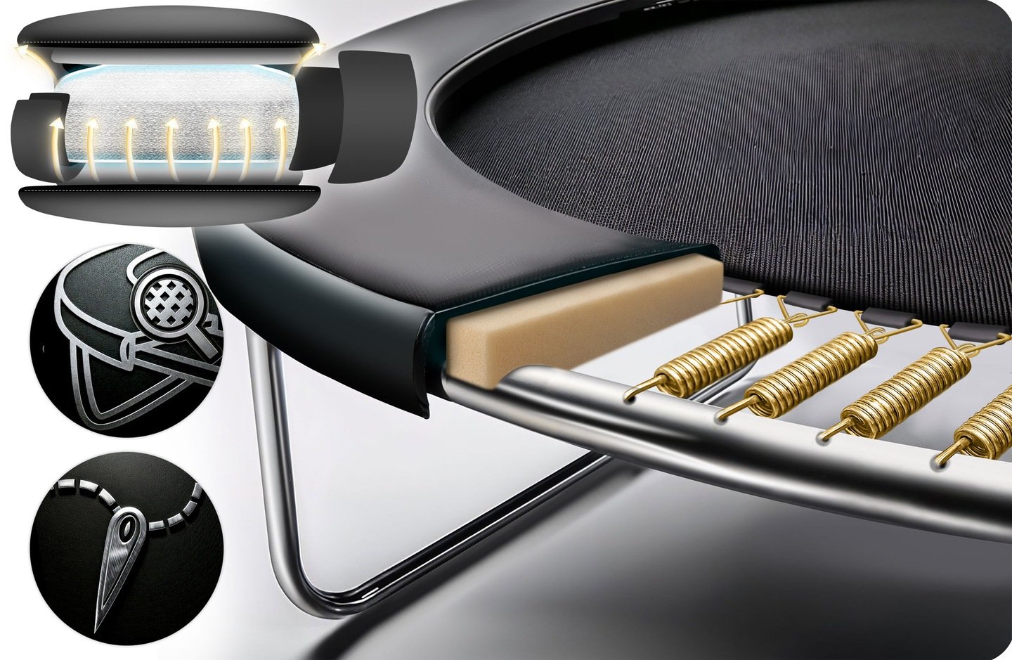 Zastosowaliśmy wydłużone i mocno naprężone sprężyny o zwiększonej elastyczności – dla jeszcze lepszego odbicia i komfortu skakania.