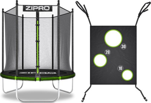 Trampolina ZIPRO przynosi wiele dobrej zabawy dla młodszych i starszych użytkowników. Dodatkowe akcesoria mogą jednak jeszcze bardziej urozmaicić czas. Specjalna mata zaczepiana do słupków zamieni trampolinę w prawdziwe centrum rozrywki! Akcesorium ma trzy otwory o różnych wielkościach, które mają służyć jako cel do rzucania lub kopania w nie piłką. Jest to m.in. idealna atrakcja dla małych piłkarzy – trenuj, zdobywaj punkty, wymyślaj własne gry i przede wszystkim postaw na beztroską zabawę!