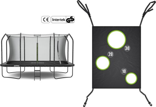 Trampolina ZIPRO przynosi wiele dobrej zabawy dla młodszych i starszych użytkowników. Dodatkowe akcesoria mogą jednak jeszcze bardziej urozmaicić czas. Specjalna mata zaczepiana do słupków zamieni trampolinę w prawdziwe centrum rozrywki! Akcesorium ma trzy otwory o różnych wielkościach, które mają służyć jako cel do rzucania lub kopania w nie piłką. Jest to m.in. idealna atrakcja dla małych piłkarzy – trenuj, zdobywaj punkty, wymyślaj własne gry i przede wszystkim postaw na beztroską zabawę!