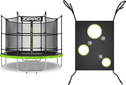 Trampolina ZIPRO przynosi wiele dobrej zabawy dla młodszych i starszych użytkowników. Dodatkowe akcesoria mogą jednak jeszcze bardziej urozmaicić czas. Specjalna mata zaczepiana do słupków zamieni trampolinę w prawdziwe centrum rozrywki! Akcesorium ma trzy otwory o różnych wielkościach, które mają służyć jako cel do rzucania lub kopania w nie piłką. Jest to m.in. idealna atrakcja dla małych piłkarzy – trenuj, zdobywaj punkty, wymyślaj własne gry i przede wszystkim postaw na beztroską zabawę!