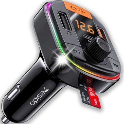 Transmiter FM Yesido Transmiter samochodowy Bluetooth 5.0 FM Szybka Ładowarka 43W 2x USB QC 3.0 + USB-C PD Micro SD Yesido do samochodu czarny
