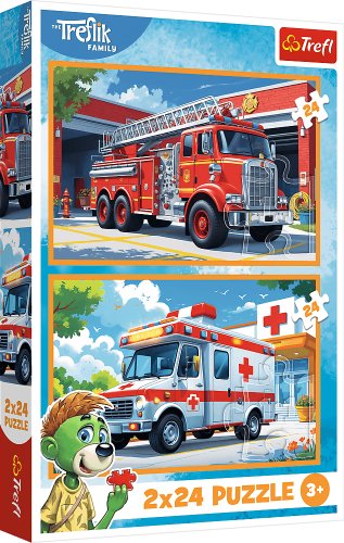 Trefl Puzzle Rodzina Treflików - Wóz strażacki i karetka 2x24 elementy (34447)