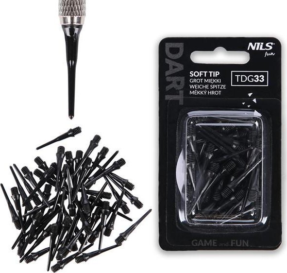TDG33 NILS FUN to miękkie groty z gwintem 2BA przeznaczone do gry w darta. Groty idealnie nadają się do plastikowych tarcz elektronicznego darta. Wykonane z plastiku są trwałe i solidne.