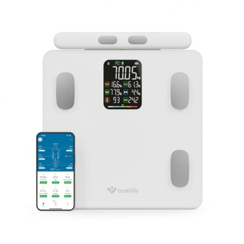 TrueLife Waga diagnostyczna bluetooth TrueLife FitScale W8 BT biała kolorowy LCD 0,1 ~ 180 kg iOS, System Android