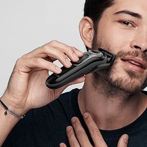 Kształtuj precyzyjne brzegi i kontury w okolicy szyi i policzków dzięki głowicy trymera do zarostu Braun.