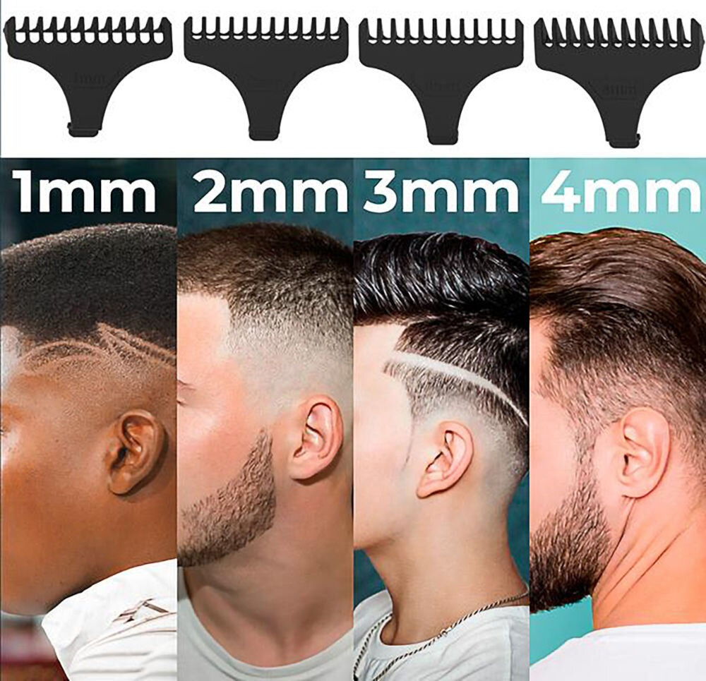 ✅ Wyposażenie: 4 nasadki grzebieniowe, Kabel USB, Olej do konserwacji, Osłona na ostrze, Szczoteczka